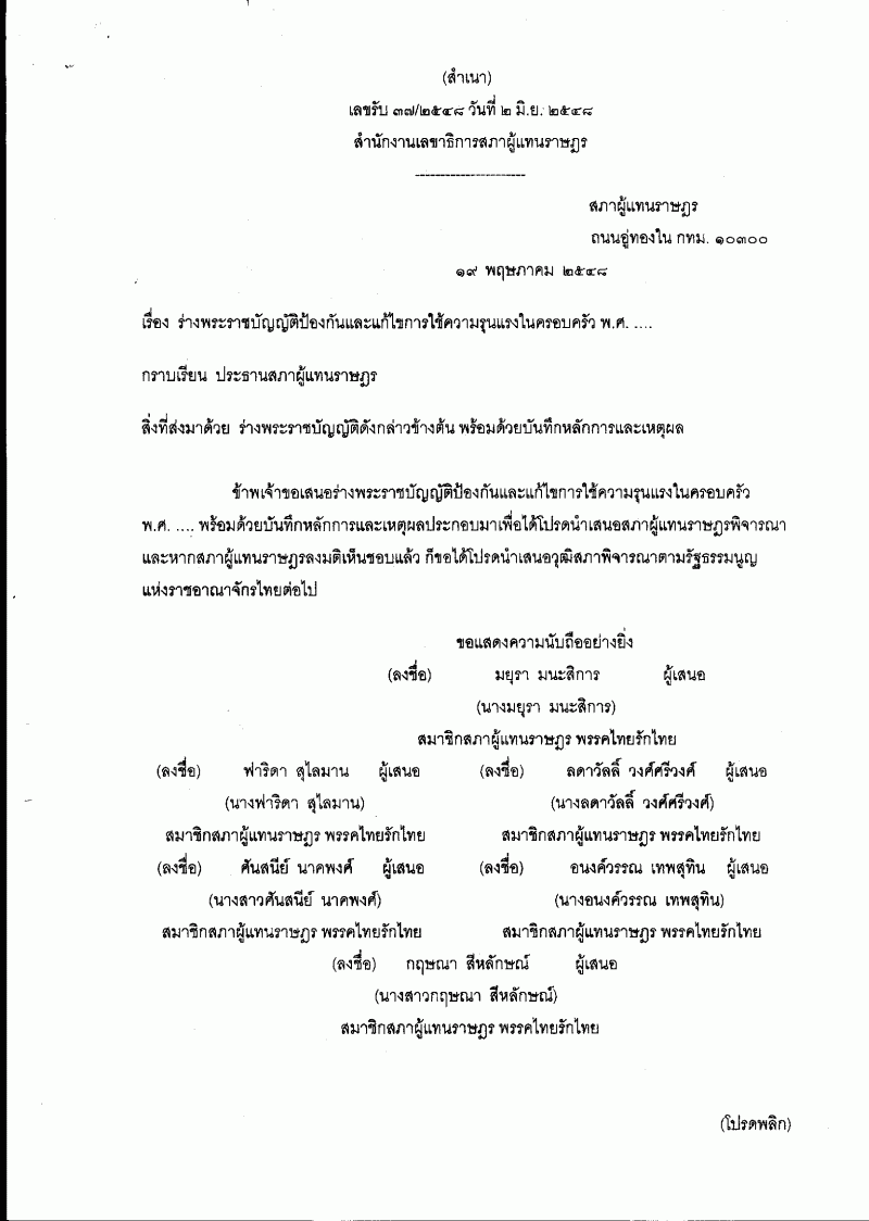 ชื่อเอกสาร :   ร่างพระราชบัญญัติป้องกันและแก้ไขการใช้ความรุนแรงในครอบครัว พ.ศ. ....