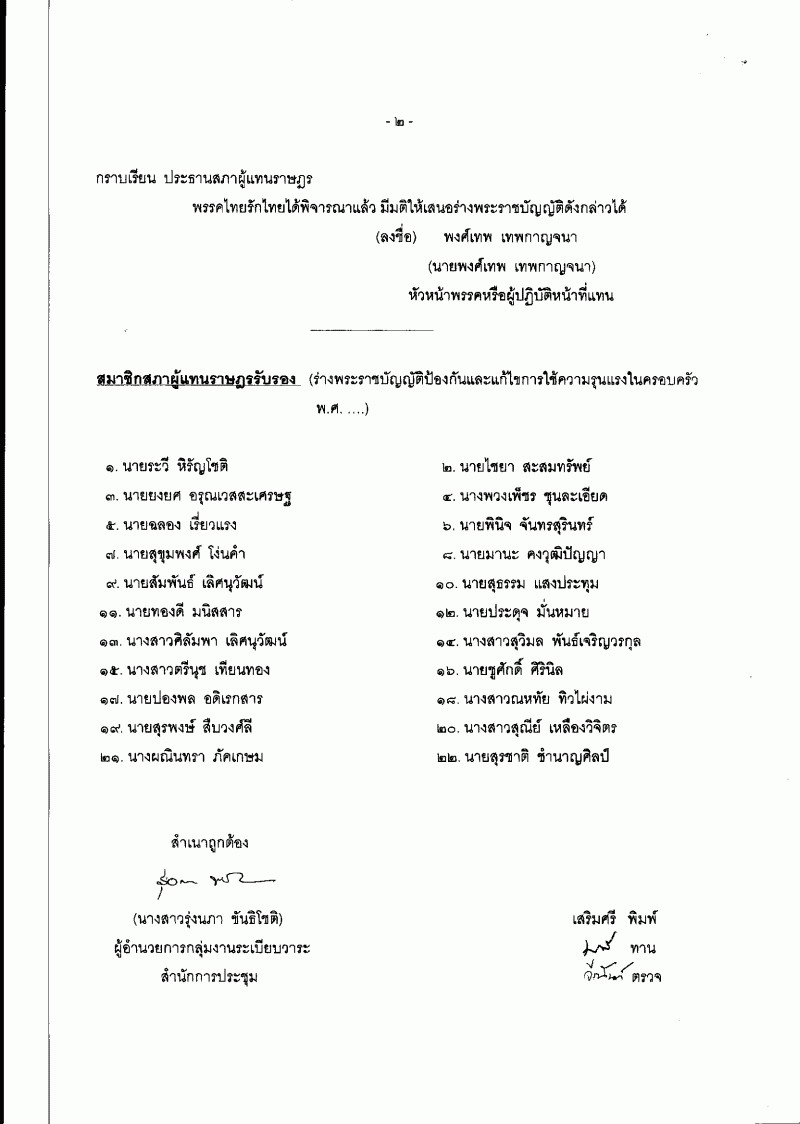 ชื่อเอกสาร :   ร่างพระราชบัญญัติป้องกันและแก้ไขการใช้ความรุนแรงในครอบครัว พ.ศ. ....
