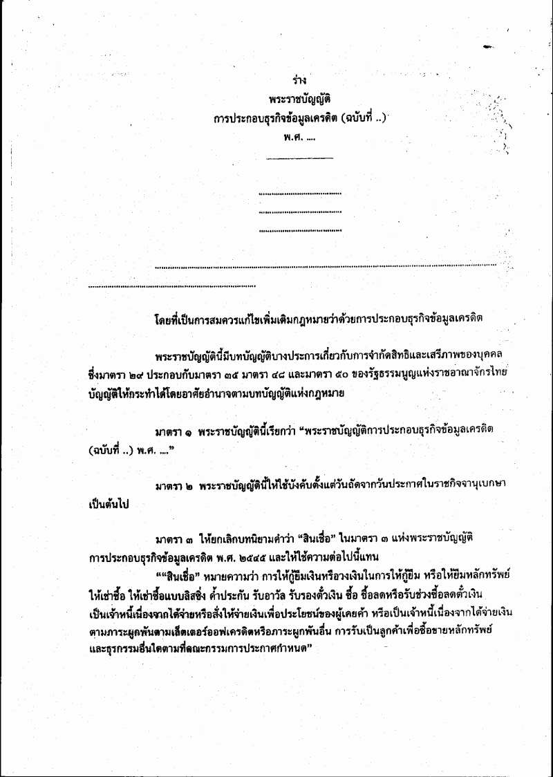 ชื่อเอกสาร :   ร่างพระราชบัญญัติการประกอบธุรกิจข้อมูลเครดิต (ฉบับที่ ..) พ.ศ. ....