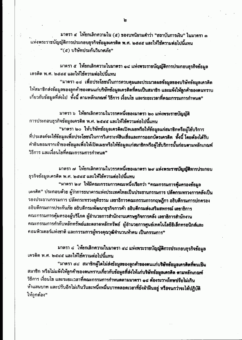 • ร่างพระราชบัญญัติการประกอบธุรกิจข้อมูลเครดิต (ฉบับที่ ..) พ.ศ. ....