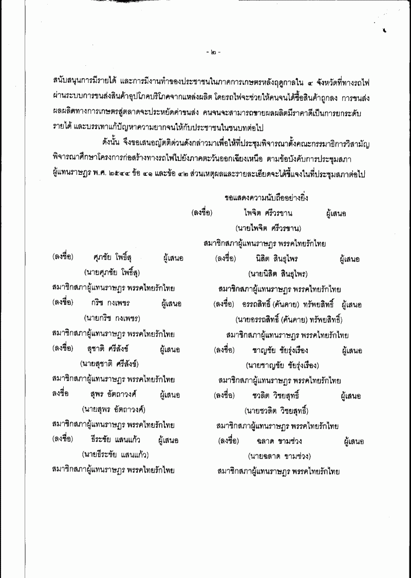 ชื่อเอกสาร :   ญัตติ เรื่อง ขอให้ตั้งคณะกรรมาธิการวิสามัญพิจารณาศึกษาโครงการก่อสร้างทางรถไฟ
