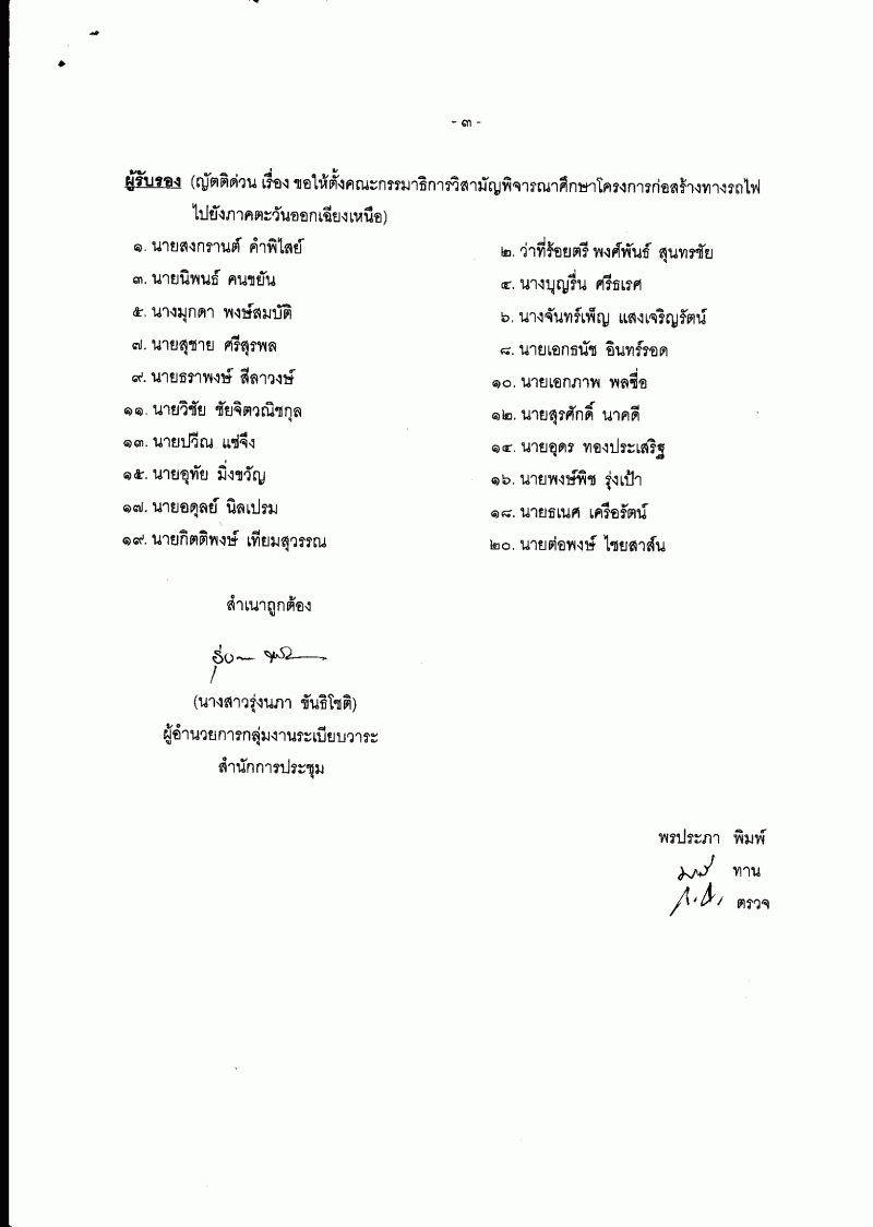 ญัตติ เรื่อง ขอให้ตั้งคณะกรรมาธิการวิสามัญพิจารณาศึกษาโครงการก่อสร้างทางรถไฟ |