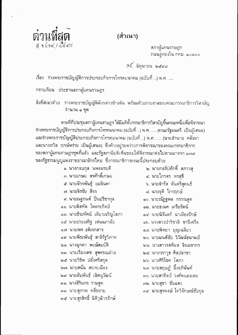 • ร่างพระราชบัญญัติการประกอบกิจการโทรคมนาคม (ฉบับที่ ..) พ.ศ. ....