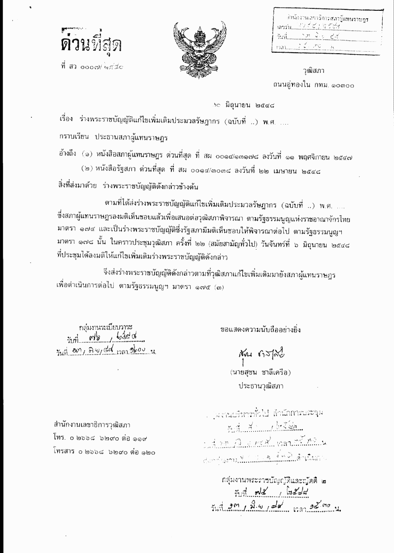 • ระเบียบวาระการประชุมสภาผู้แทนราษฎร > ชุดที่ 22 > ปีที่ 1 > สมัยสามัญทั่วไป > ครั้งที่ 18 > เรื่องด่วน