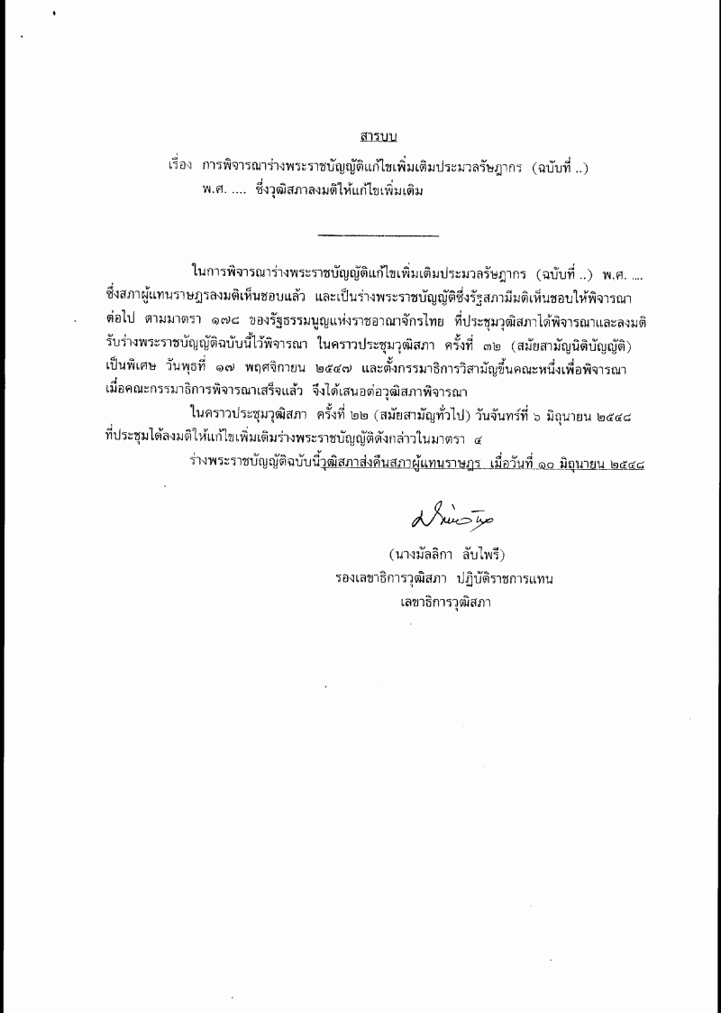 ชื่อเอกสาร :   พิจารณากรณีวุฒิสภาแก้ไขเพิ่มเติมร่างพระราชบัญญัติแก้ไขเพิ่มเติมประมวลรัษฎากร (ฉบับที่ ..) พ.ศ. ....