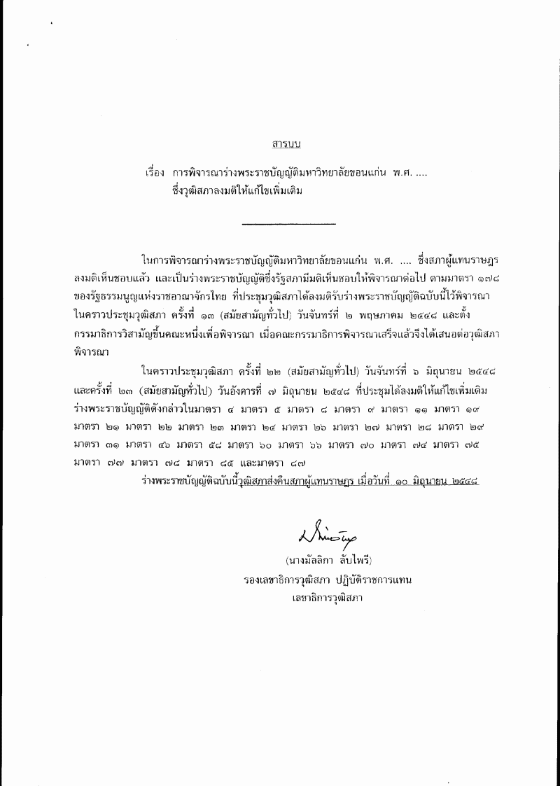 ชื่อเอกสาร :   พิจารณากรณีวุฒิสภาแก้ไขเพิ่มเติมร่างพระราชบัญญัติมหาวิทยาลัยขอนแก่น พ.ศ. ....