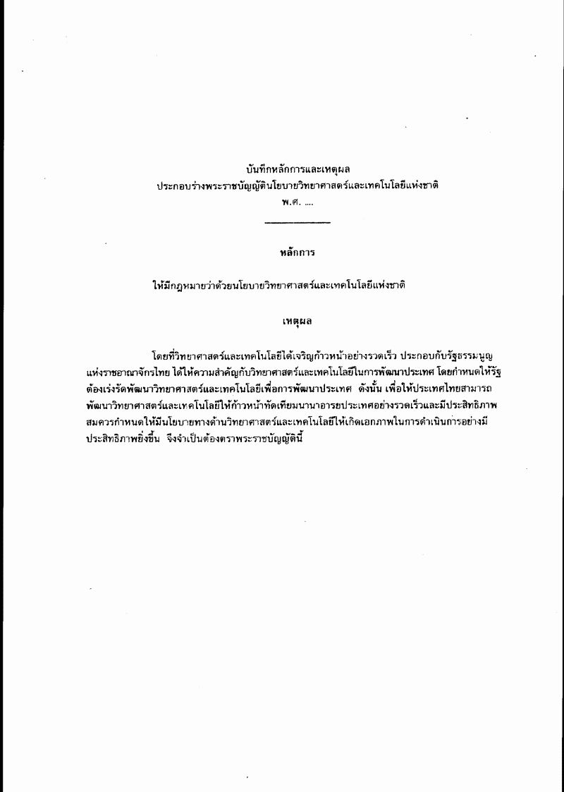 ชื่อเอกสาร :   ร่างพระราชบัญญัตินโยบายวิทยาศาสตร์และเทคโนโลยีแห่งชาติ พ.ศ. ....