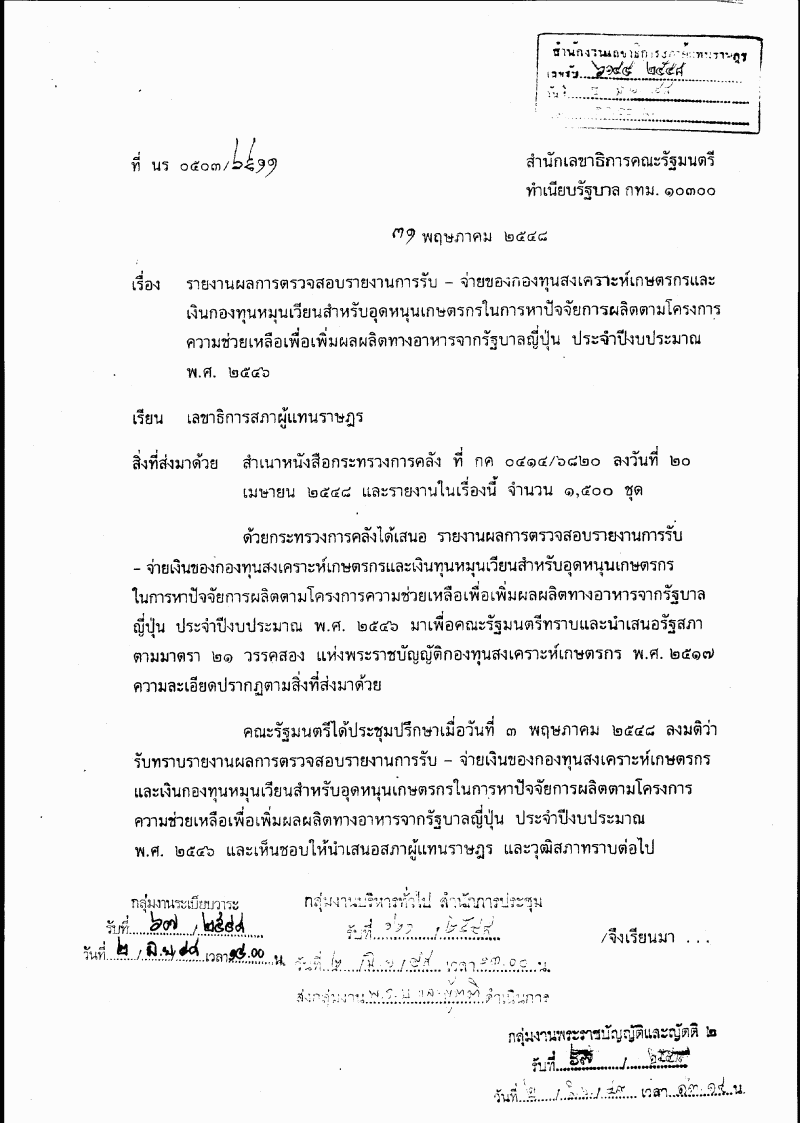 ชื่อเอกสาร :   รับทราบรายงานผลการตรวจสอบรายงานการรับ - จ่ายกองทุนสงเคราะห์