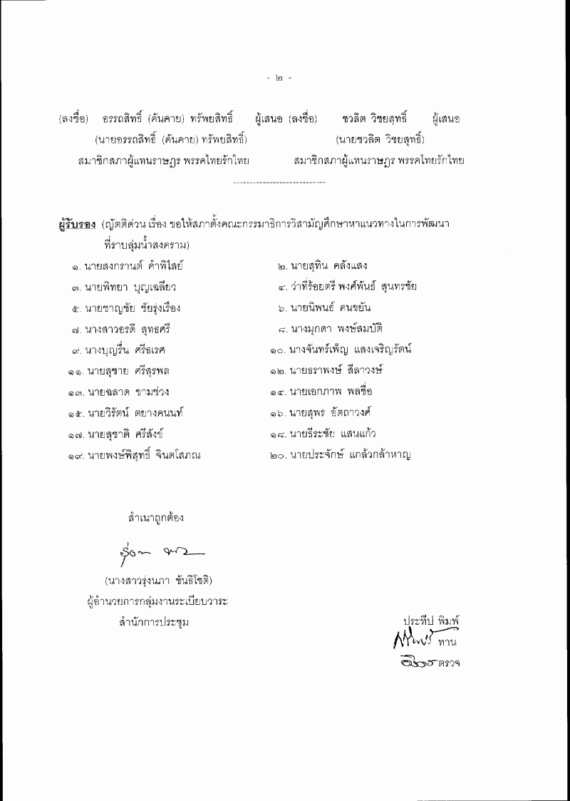 ชื่อเอกสาร :   ญัตติด่วน เรื่อง ขอให้สภาตั้งคณะกรรมาธิการวิสามัญศึกษาหาแนวทางในการพัฒนาที่ราบลุ่ม
