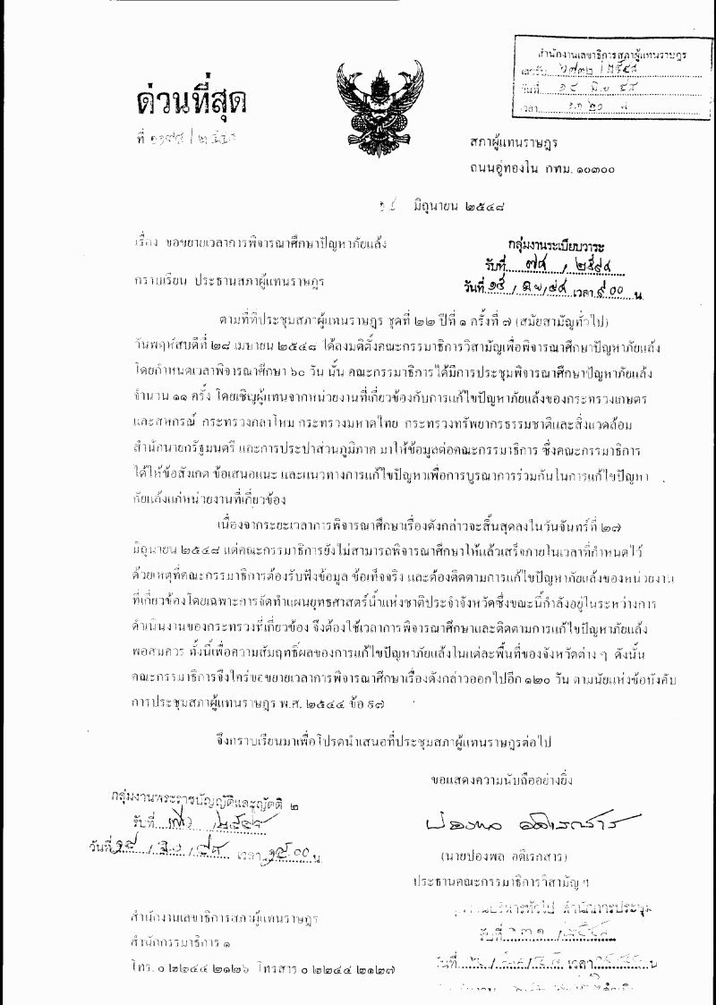 ชื่อเอกสาร : ขอขยายเวลาการพิจารณาศึกษาปัญหาภัยแล้ง