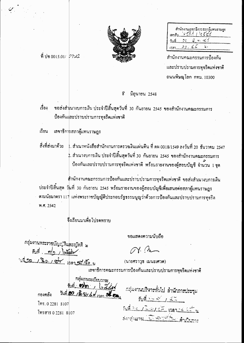 ชื่อเอกสาร :   รับทราบงบการเงิน ประจำปีสิ้นสุดวันที่ 30 กันยายน 2545