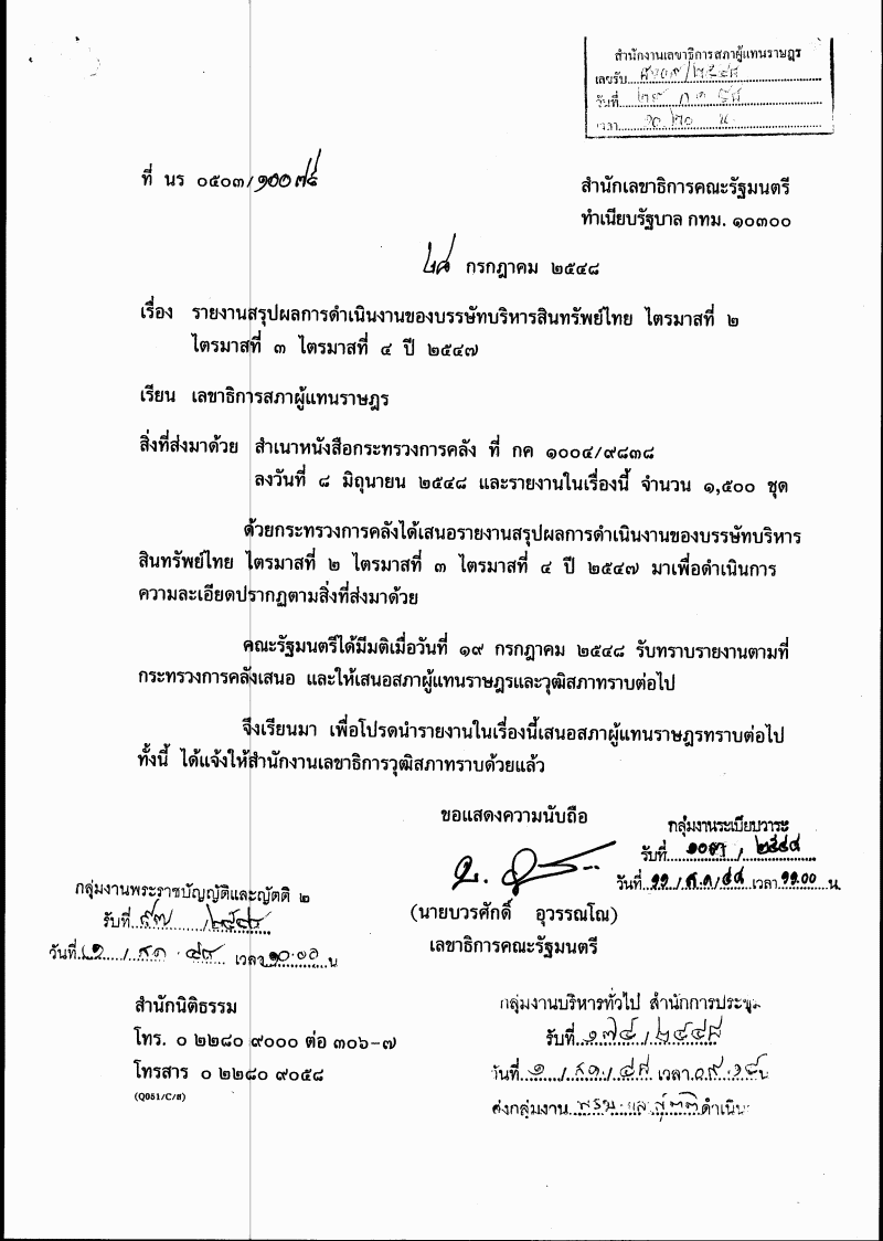 รับทราบรายงานสรุปผลการดำเนินงงานของบรรษัทบริหารสินทรัพย์ไทย ไตรมาสที่ 2 ไตรมาสที่ 3 ไตรมาสที่ 4 ปี 2547 |