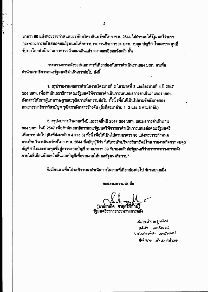 รับทราบรายงานสรุปผลการดำเนินงงานของบรรษัทบริหารสินทรัพย์ไทย ไตรมาสที่ 2 ไตรมาสที่ 3 ไตรมาสที่ 4 ปี 2547 |