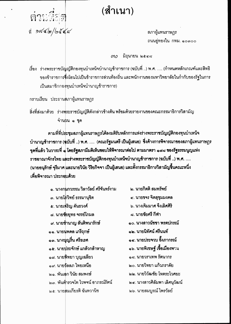 ชื่อเอกสาร :   ร่างพระราชบัญญัติกองทุนบำเหน็จบำนาญข้าราชการ (ฉบับที่ ..) พ.ศ. ....