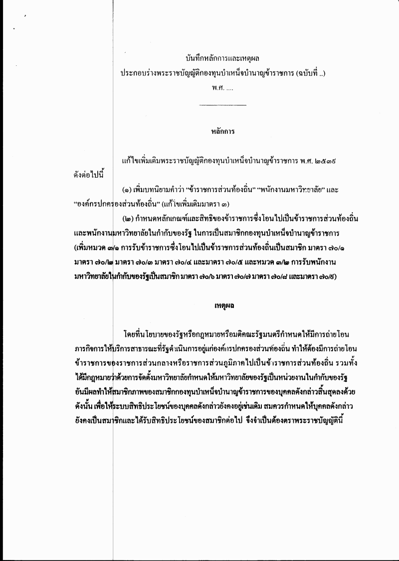ชื่อเอกสาร :   ร่างพระราชบัญญัติกองทุนบำเหน็จบำนาญข้าราชการ (ฉบับที่ ..) พ.ศ. ....