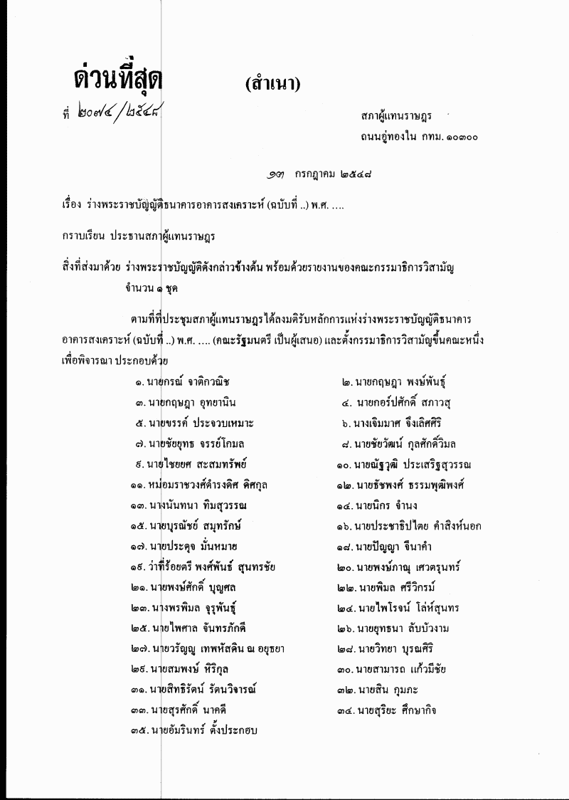 • ร่างพระราชบัญญัติอาคารสงเคราะห์ (ฉบับที่ ..) พ.ศ. ....