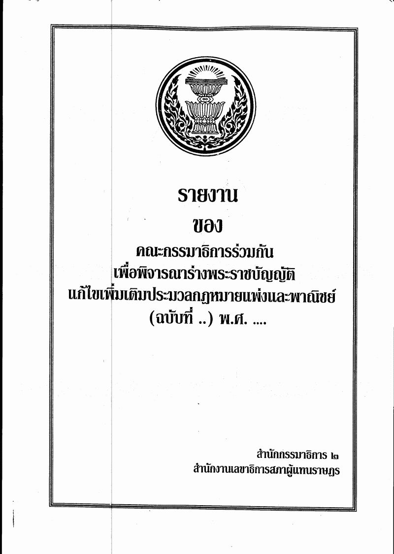 • ร่างพระราชบัญญัติแก้ไขเพิ่มเติมประมวลกฎหมายแพ่งและพาณิชย์ (ฉบับที่ ..) พ.ศ. ....