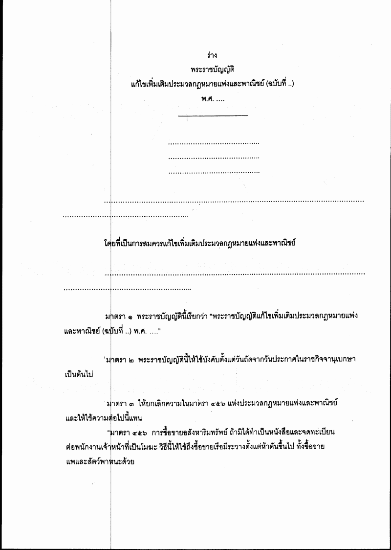 ชื่อเอกสาร :   ร่างพระราชบัญญัติแก้ไขเพิ่มเติมประมวลกฎหมายแพ่งและพาณิชย์ (ฉบับที่ ..) พ.ศ. ....