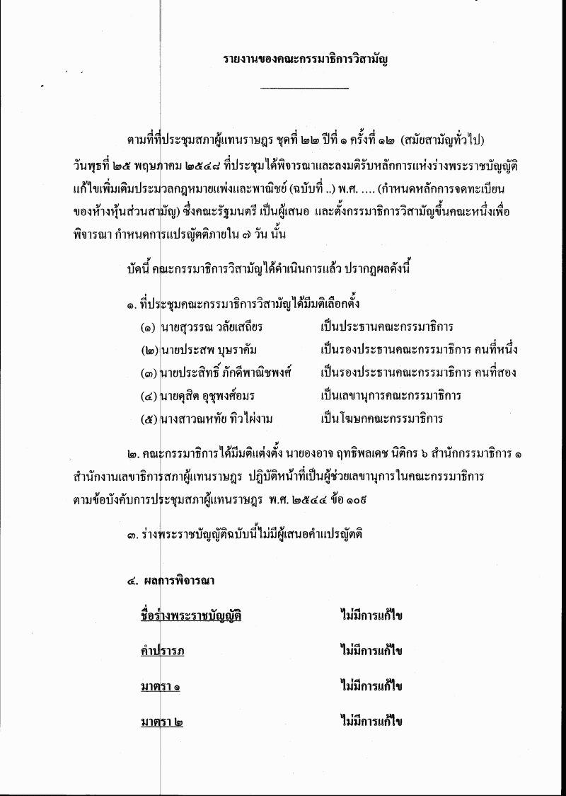 • ระเบียบวาระการประชุมสภาผู้แทนราษฎร > ชุดที่ 22 > ปีที่ 1 > สมัยสามัญนิติบัญญัติ > ครั้งที่ 1 > (4) เรื่องที่คณะกรรมาธิการพิจารณาเสร็จแล้ว