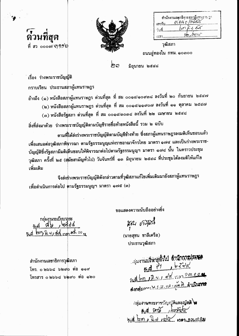 ชื่อเอกสาร :   พิจารณากรณีวุฒิสภาแก้ไขเพิ่มเติมร่างพระราชบัญญัติส่งเสริมการพาณิชยนาวี