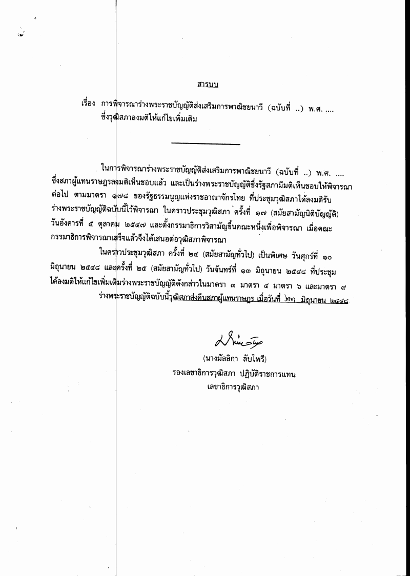ชื่อเอกสาร :   พิจารณากรณีวุฒิสภาแก้ไขเพิ่มเติมร่างพระราชบัญญัติส่งเสริมการพาณิชยนาวี