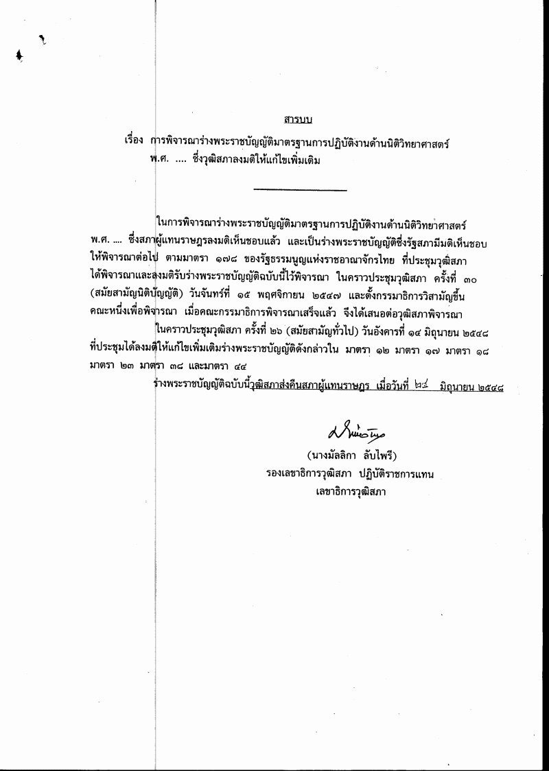 ชื่อเอกสาร :   พิจารณากรณีวุฒิสภาแก้ไขเพิ่มเติมร่างพระราชบัญญัติมาตรฐานการปฏิบัติงานด้านวิทยาศาสตร์ พ.ศ. ....