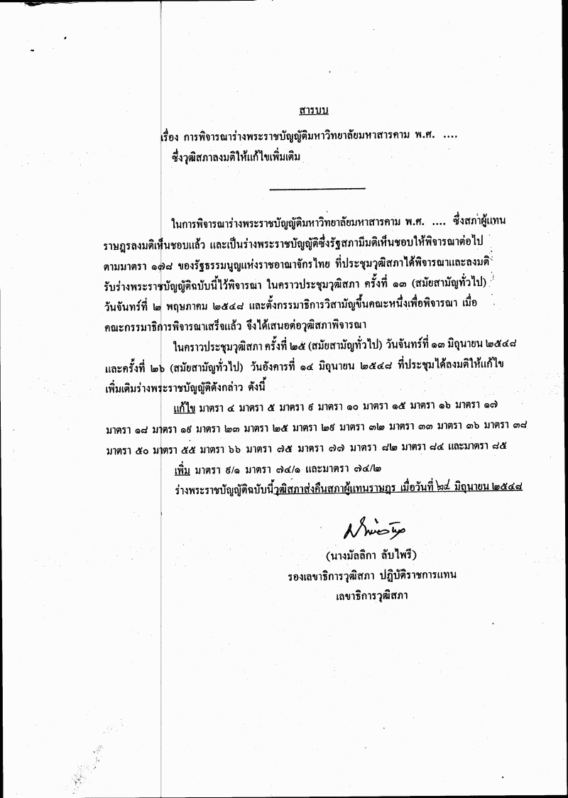 ชื่อเอกสาร :   พิจารณากรณีวุฒิสภาแก้ไขเพิ่มเติมร่างพระราชบัญญัติมหาวิทยาลัยมหาสารคาม พ.ศ. ....