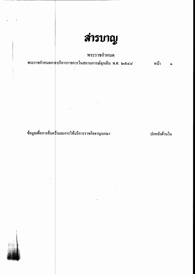 ชื่อเอกสาร :   พระราชกำหนดการบริหารราชการในสถานการณ์ฉุกเฉิน พ.ศ. 2548