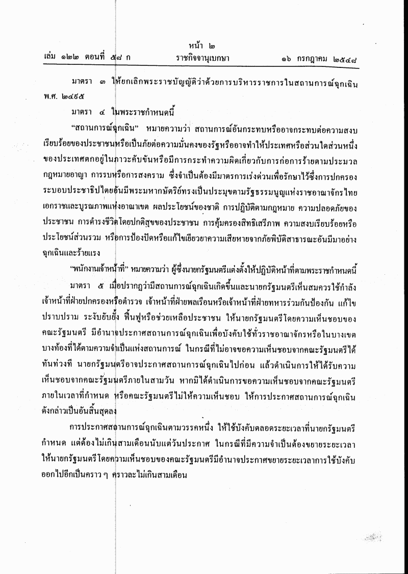 ชื่อเอกสาร : พระราชกำหนดการบริหารราชการในสถานการณ์ฉุกเฉิน พ.ศ. 2548