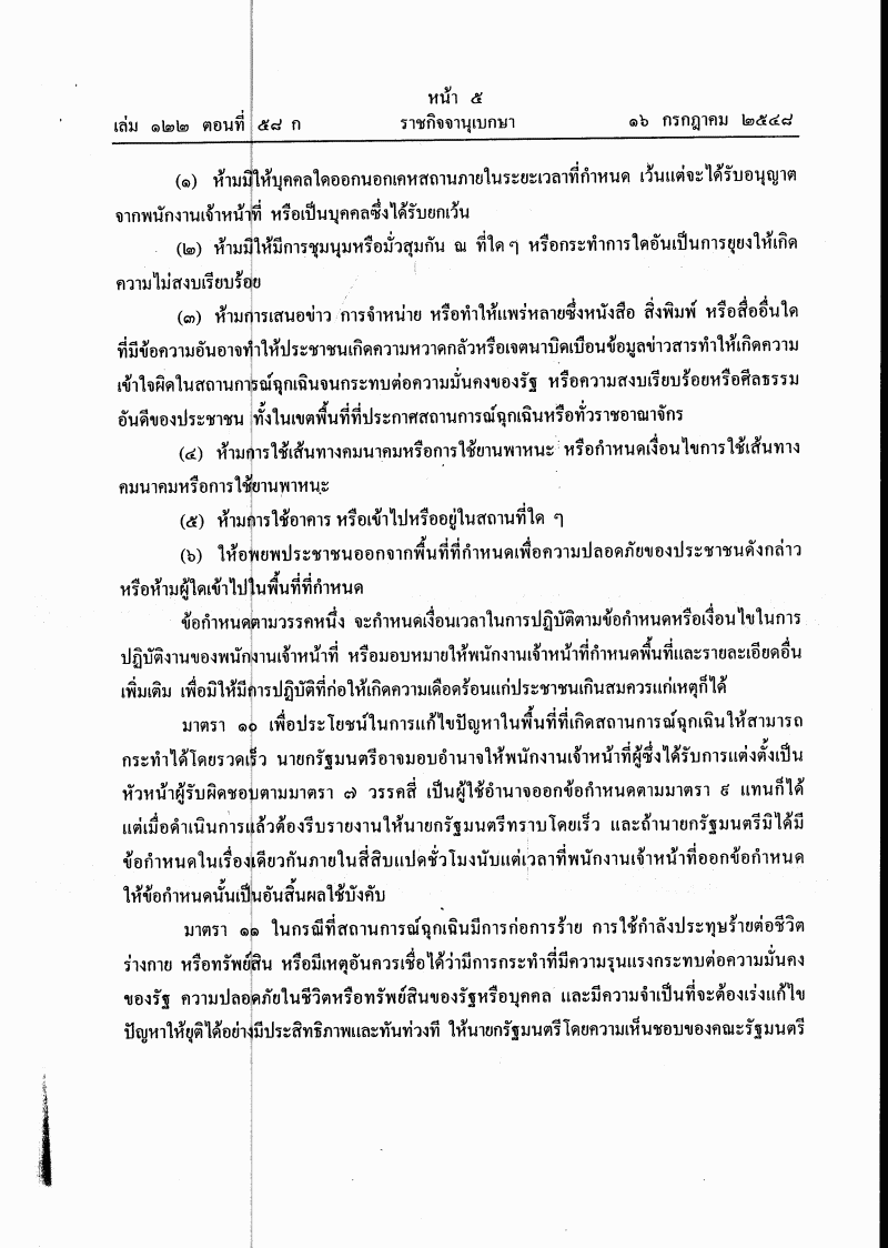 ชื่อเอกสาร :   พระราชกำหนดการบริหารราชการในสถานการณ์ฉุกเฉิน พ.ศ. 2548