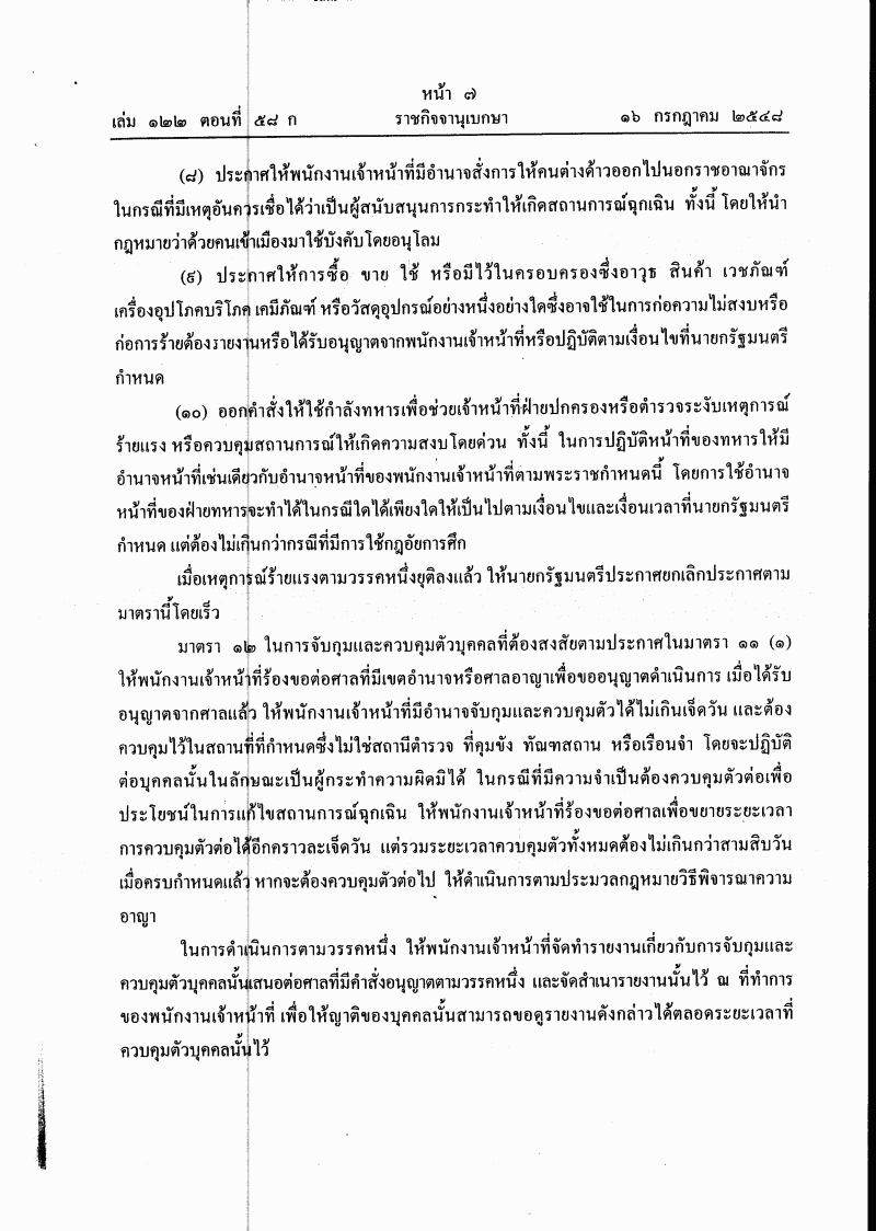 • พระราชกำหนดการบริหารราชการในสถานการณ์ฉุกเฉิน พ.ศ. 2548