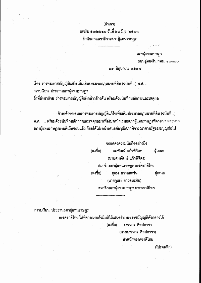 ชื่อเอกสาร :   ร่างพระราชบัญญัติแก้ไขเพิ่มเติมประมวลกฎหมายที่ดิน (ฉบับที่ ..) พ.ศ. ....