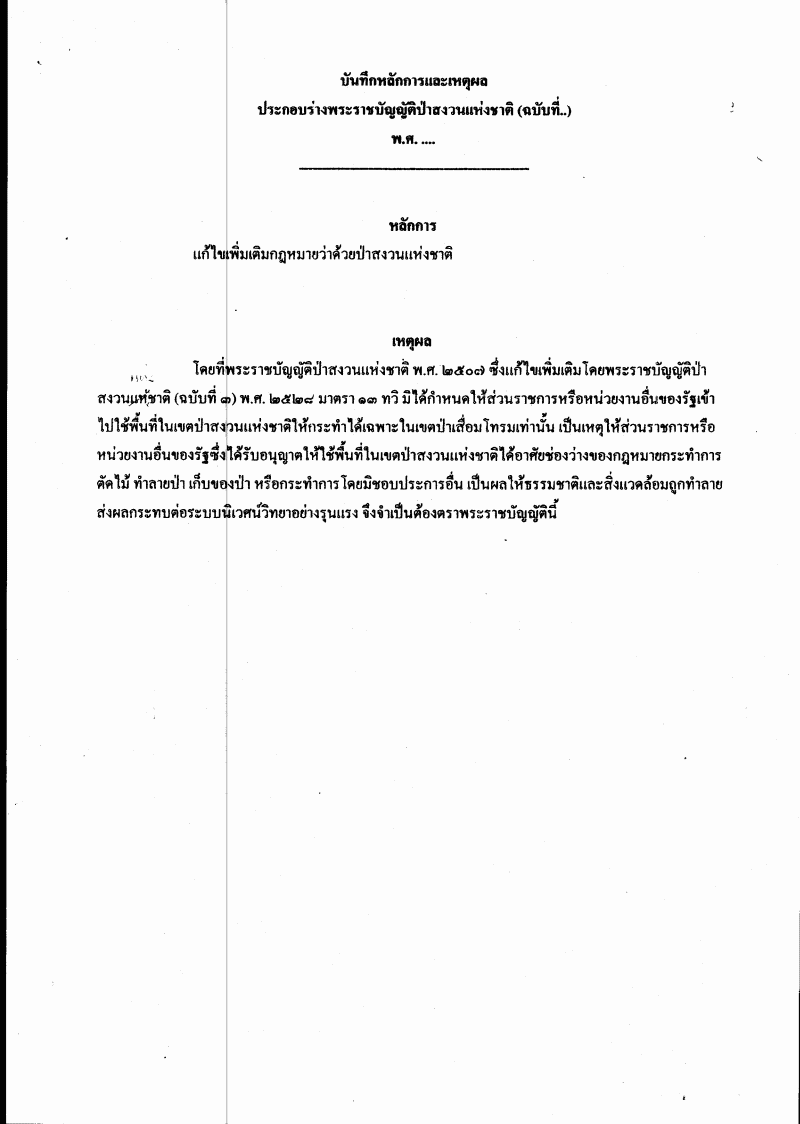 ชื่อเอกสาร : ร่างพระราชบัญญัติป่าสงวนแห่งชาติ (ฉบับที่ ..) พ.ศ. ....