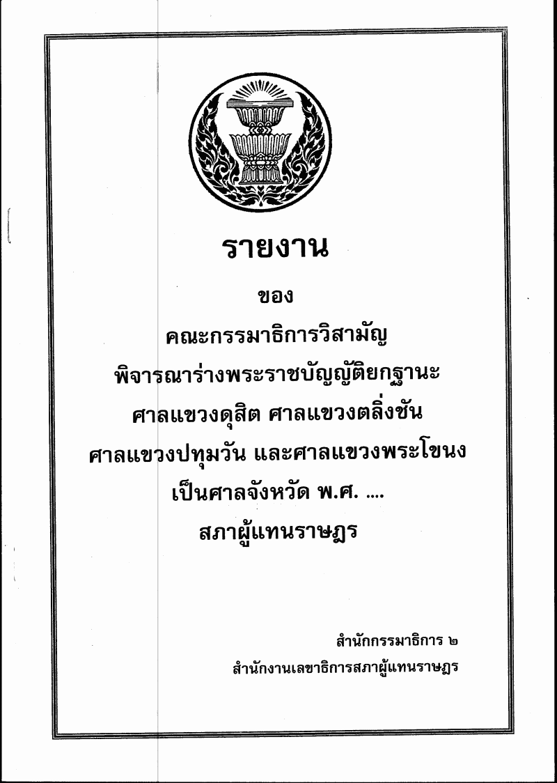 ร่างพระราชบัญญัติยกฐานะศาลแบวงดุสิต ศาลแขวงตลิ่งชัน ศาลแวงปทุมวัน และศาลแขวงพระโขนง |