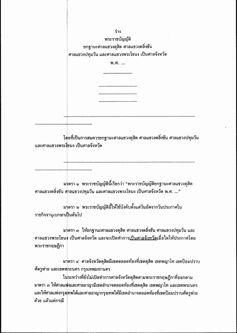 ชื่อเอกสาร :   ร่างพระราชบัญญัติยกฐานะศาลแบวงดุสิต ศาลแขวงตลิ่งชัน ศาลแวงปทุมวัน และศาลแขวงพระโขนง