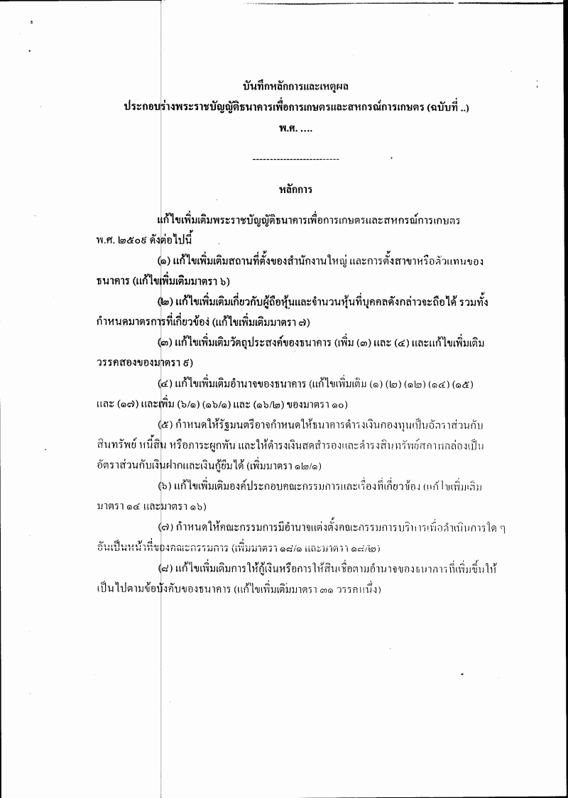 • ร่างพระราชบัญญัติธนาคารเพื่อการเกษตรและสหกรณ์การเกษตร (ฉบับที่ ..) พ.ศ. ....