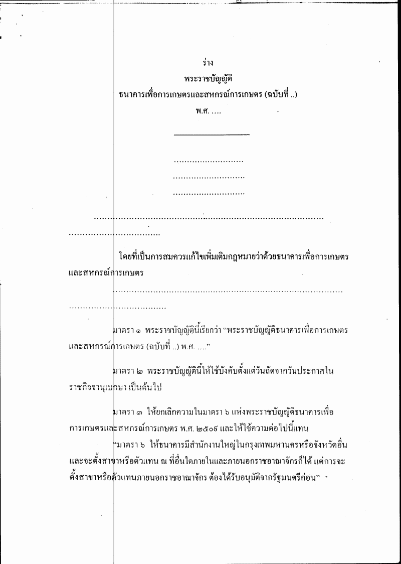 ชื่อเอกสาร :   ร่างพระราชบัญญัติธนาคารเพื่อการเกษตรและสหกรณ์การเกษตร (ฉบับที่ ..) พ.ศ. ....
