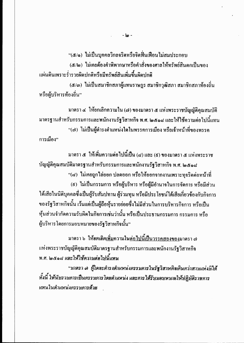 • ร่างพระราชบัญญัติคุณสมบัติมาตรฐานสำหรับกรรมการและพนักงานรัฐวิสาหกิจ (ฉบับที่ ..) พ.ศ. ....
