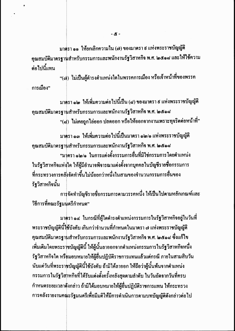 • ร่างพระราชบัญญัติคุณสมบัติมาตรฐานสำหรับกรรมการและพนักงานรัฐวิสาหกิจ (ฉบับที่ ..) พ.ศ. ....
