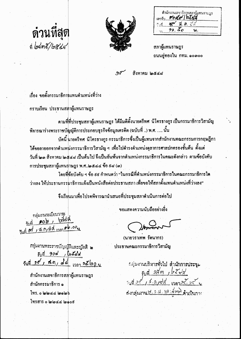 ตั้งซ่อมกรรมาธิการวิสามัญพิจารณาร่างพระราชบัญญัติการประกอบธุรกิจข้อมูลเครดิต (ฉบับที่ ..) พ.ศ. .... |