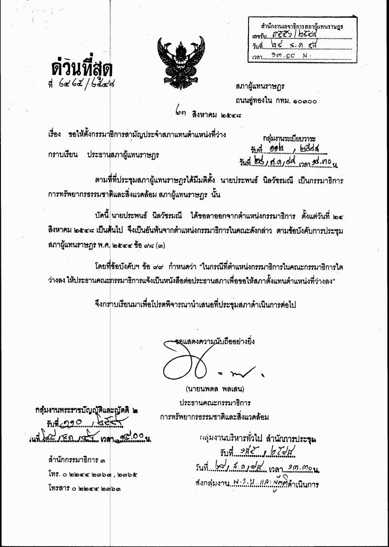 ชื่อเอกสาร : ตั้งซ่อมกรรมาธิการสามัญประจำสภา ในคณะกรรมาธิการการทรัพยากรธรรมชาติฯ
