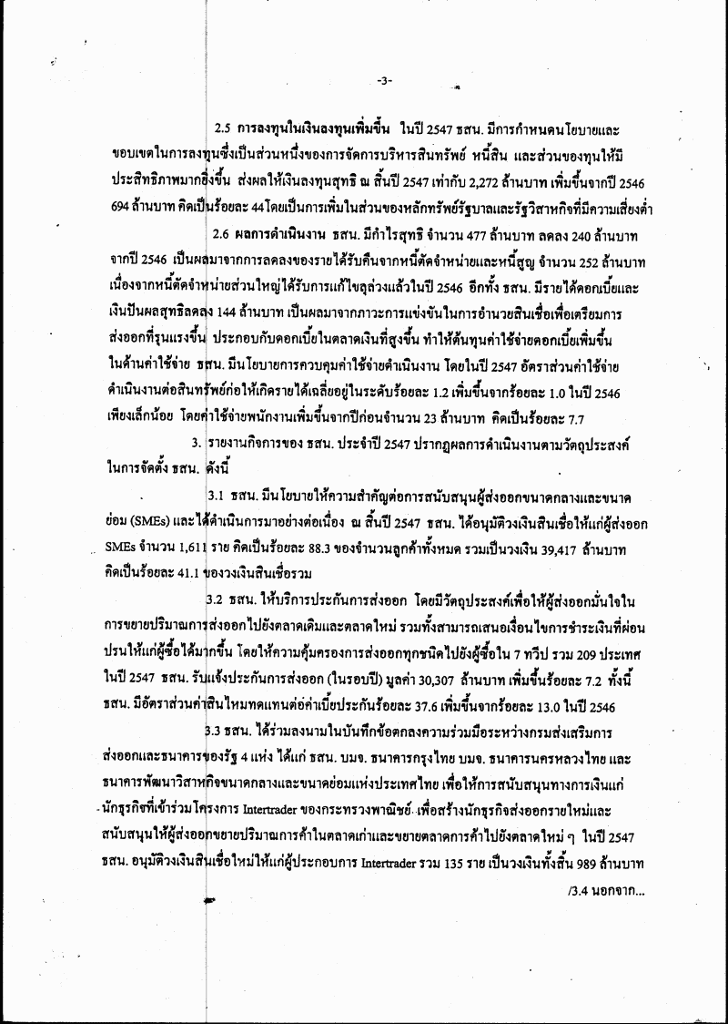 รับทรายรายงานกิจการประจำปี งบดุล บัญชีกำไรและขาดทุนของธนาคารเพื่อการส่งออกฯ