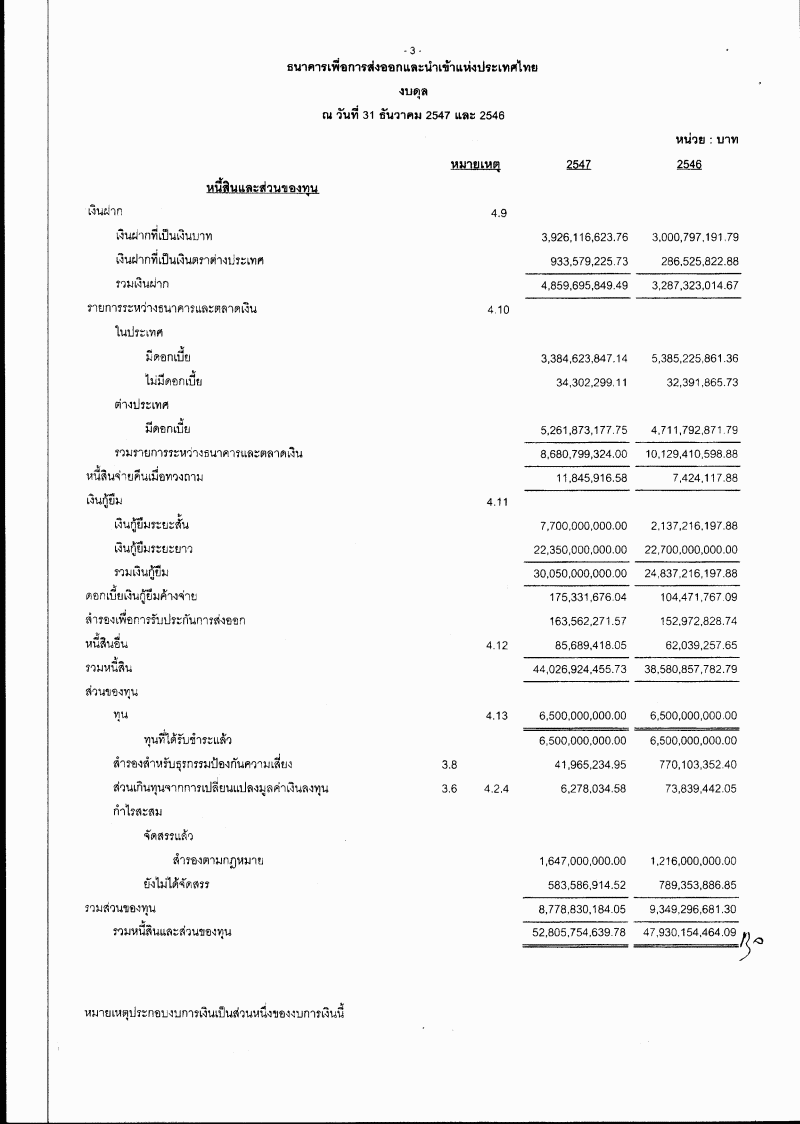 รับทรายรายงานกิจการประจำปี งบดุล บัญชีกำไรและขาดทุนของธนาคารเพื่อการส่งออกฯ