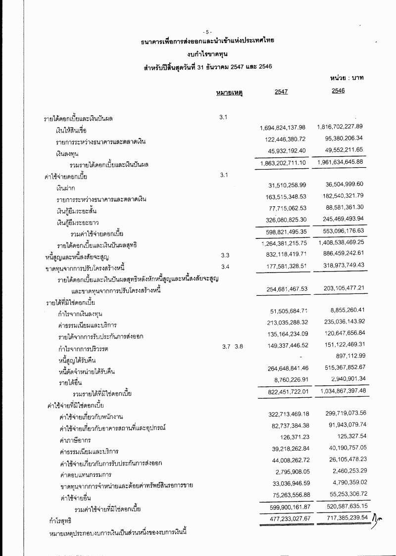 รับทรายรายงานกิจการประจำปี งบดุล บัญชีกำไรและขาดทุนของธนาคารเพื่อการส่งออกฯ