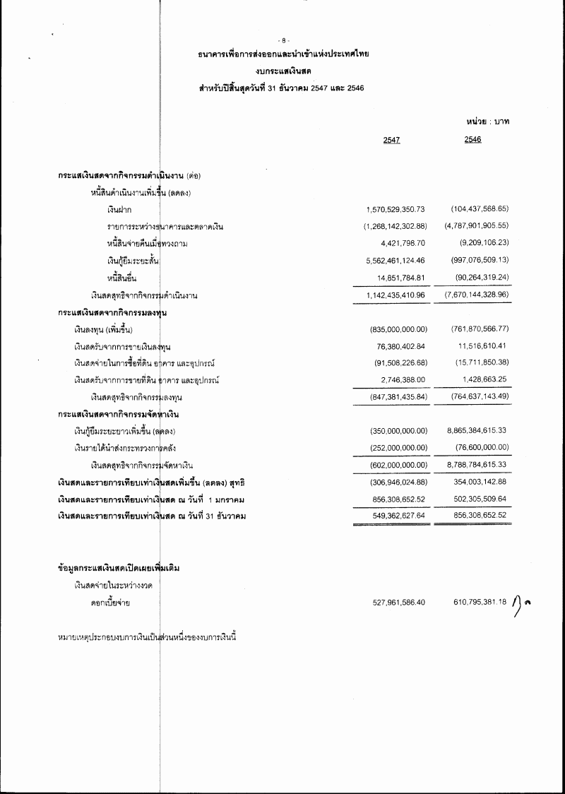 รับทรายรายงานกิจการประจำปี งบดุล บัญชีกำไรและขาดทุนของธนาคารเพื่อการส่งออกฯ