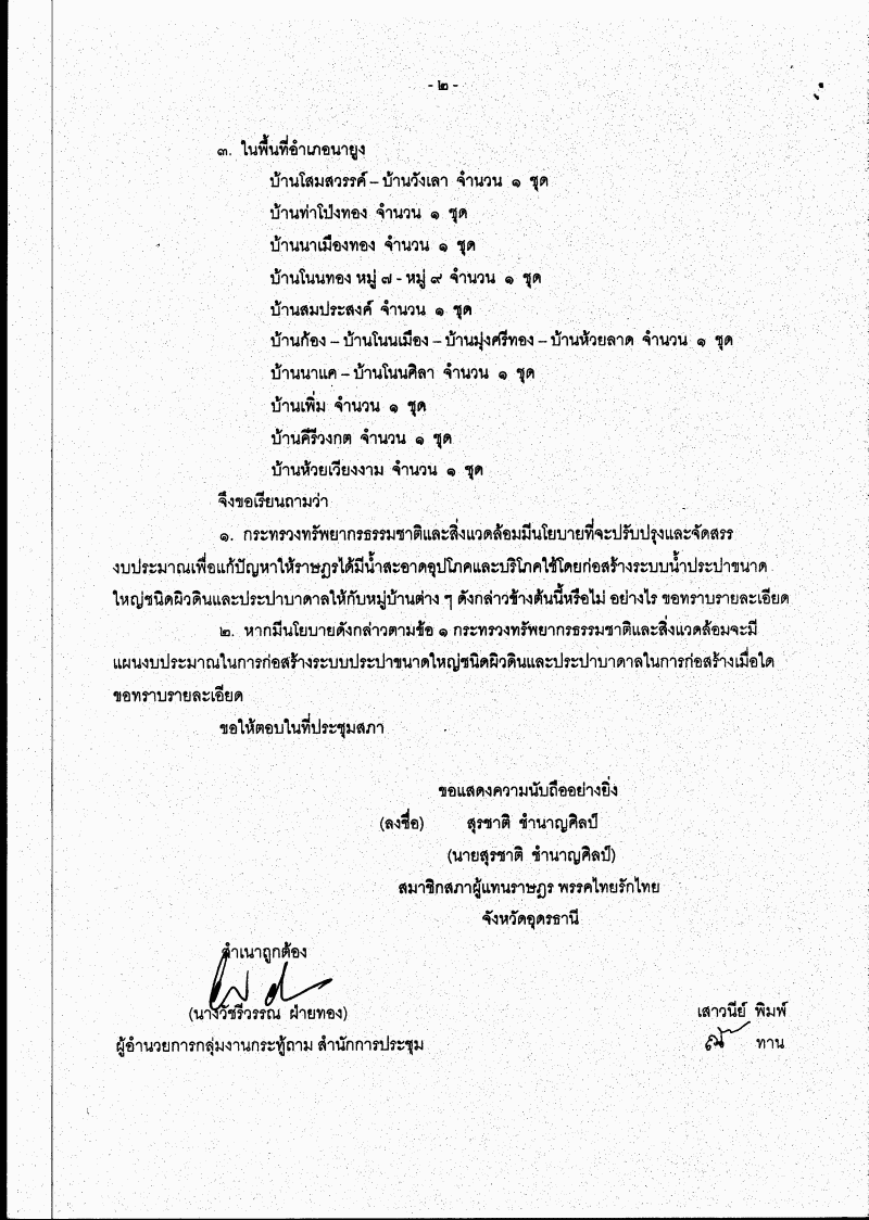ชื่อเอกสาร :   กระทู้ถาม เรื่อง แผนกอสร้างระบบประปาขนาดใหญ่ชนิดผิวดินและประปาบาดาล