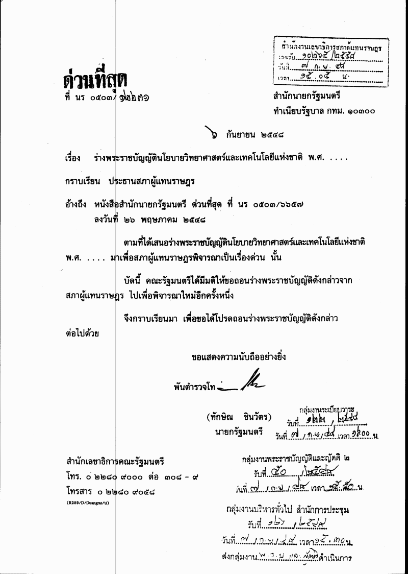 ร่างพระราชบัญญัตินโยบายวิทยาศาสตร์และเทคโนโลยีแห่งชาติ พ.ศ. .... |