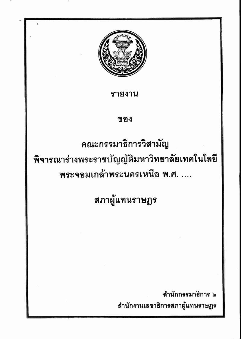 ชื่อเอกสาร :   ร่างพระราชบัญญัติมหาวิทยาลัยเทคโนโลยีพระจอมเกล้าพระนครเหนือ พ.ศ. ....