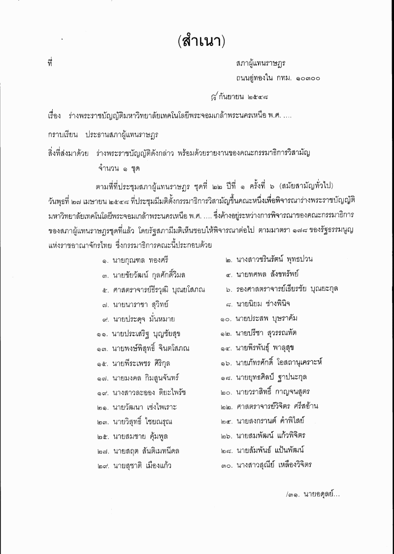 • ร่างพระราชบัญญัติมหาวิทยาลัยเทคโนโลยีพระจอมเกล้าพระนครเหนือ พ.ศ. ....