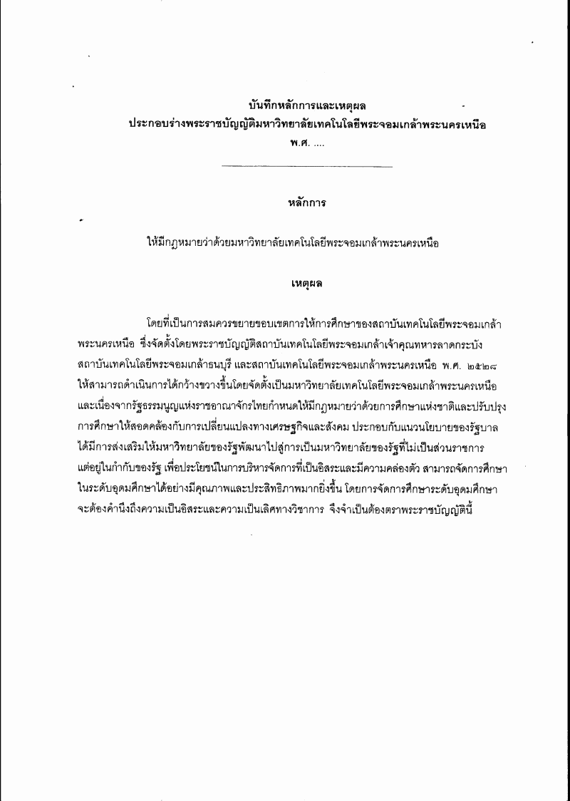 ชื่อเอกสาร :   ร่างพระราชบัญญัติมหาวิทยาลัยเทคโนโลยีพระจอมเกล้าพระนครเหนือ พ.ศ. ....
